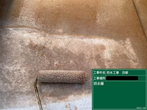 今回施工させて頂いたこちらのお宅では、防水にFRPという種類の防水を施工されておりました。