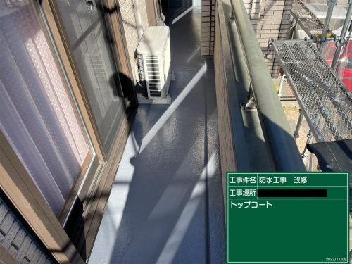 さて今日は外壁塗装工事をご依頼いただいたお客様からベランダ防水工事の追加工事を頂き、先日完成しましたのでご紹介したいと思います。