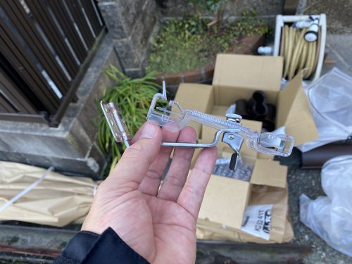 雨樋の金具は、従来の金具だとサビたりみばえが悪いので、調整の聞く上で取付るタイプで施工しました。