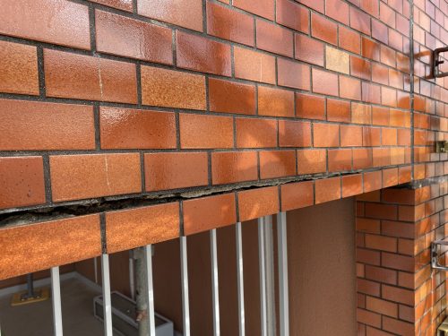 タイルが同じものがないのと、また剥がれる恐れがあるためシーリングも3回に分けての施工です。クリヤー防水施工後にサッシ廻りを打ち替えと横のタイル目地を打ち換えていきます。