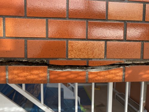 タイル面のひび割れが予想以上に激しく、養生が大変です。写真を見てもらうとわかりますが、タイルも落ちてる為、シーリングで埋めております。