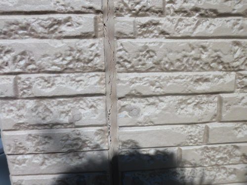 外壁と外壁の間のつなぎ目(シーリング材)が紫外線の影響を受け、硬くなりひび割れを起こしている箇所が何ヶ所かありました。