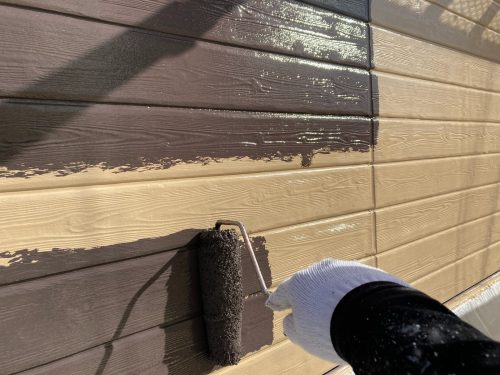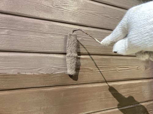 木目柄の外壁部分には通常の色付き塗装を行いました。
