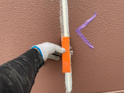 こちらのつなぎ目の補修をする際には、シーリングのラインをはっきりと出してしまうと完成後につなぎ目のラインが浮き出て違和感が起きてしまうので今回は養生を行わない施工方法で行わせて頂きました。