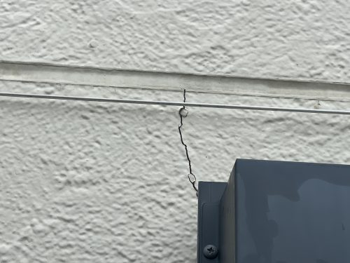 ひび割れの原因としてもちろん建物の揺れの影響もありますが、外壁の表面の防水塗膜が劣化している為ひび割れが起こります。