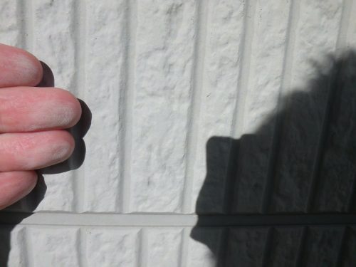 外壁を指で触るとチョークの粉のようなものが付きました。