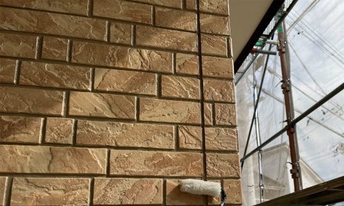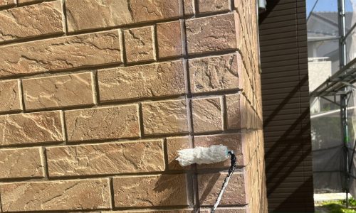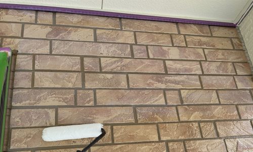 タイル模様の外壁にはクリヤー塗装を行いました。