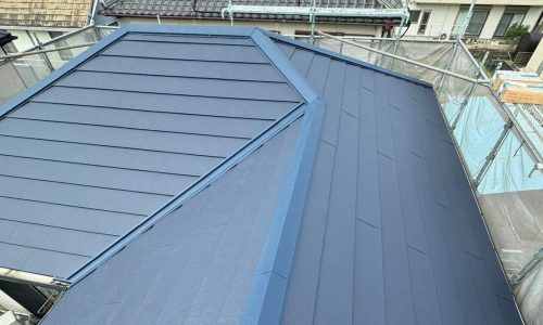 施工過程では、下地を整えた後、新しい屋根材を設置していきます。今回は断熱性と耐久性に優れたガルバリウム鋼板を採用し、風雨に強く、メンテナンスも容易です。施工作業が終わると、お客様もその美しい仕上がりに大変満足されておりました。