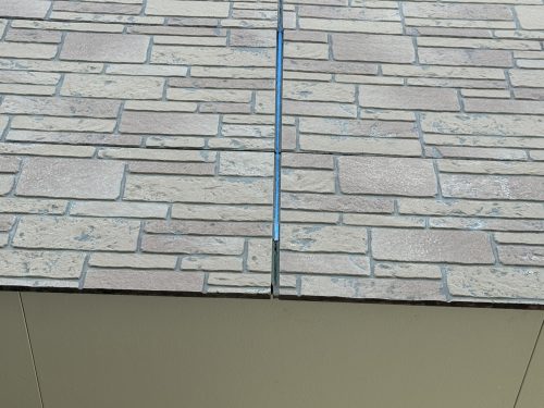 お宅を訪問し建物の状態を確認したところ、木目調とレンガ調のサイディング外壁と洋瓦の可愛らしいデザインが印象的でした。しかし、外観の美しさに反して、劣化の兆候が見受けられました。特に、外壁と外壁の間に打たれているシーリングの劣化が目立ちました。