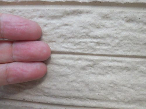 外壁はサイディングボードで、表面にはチョーキング現象が発生していました。チョーキングとは、塗装面が劣化して白い粉が浮き出る現象で、これは塗膜が紫外線や雨風によって劣化している証拠です。チョーキングが進行すると、外壁の保護機能が弱まり、外部からの湿気や水分が壁内に浸透するリスクが高くなります。