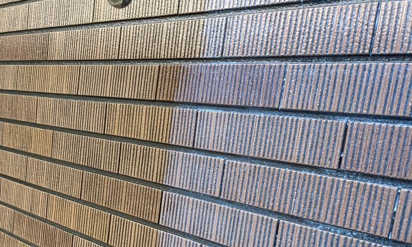 外壁の施工には、まずタイル模様のサイディング部分をクリヤー塗装で仕上げました。
