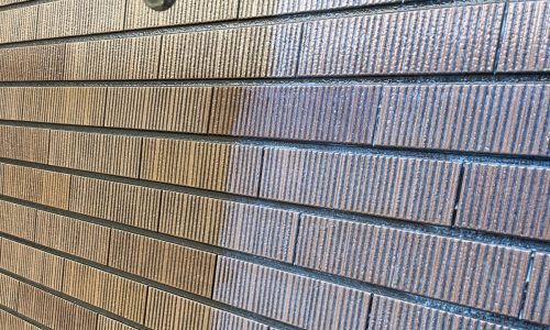 この部分には、RHピュアフレックス無機塗料を使用しました。この塗料は、無機質の成分が特徴で、長期間の耐久性を誇ります。特にタイル模様の部分は、クリアな仕上がりを求められるため、塗料の透明感と耐久性が重要です。RHピュアフレックス無機は、色の深みと艶感を保持しながら、外壁をしっかり保護することができます。