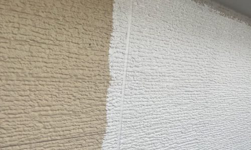また、色付き塗装部分にも同じくRHピュアフレックス無機を使用しました。色付き塗装では、外観の美しさとともに、紫外線や雨水から外壁を守る機能が求められます。無機塗料は、塗膜が非常に強固で、色褪せを防ぎながら、建物の外観を長期間にわたって美しく保つことができます。