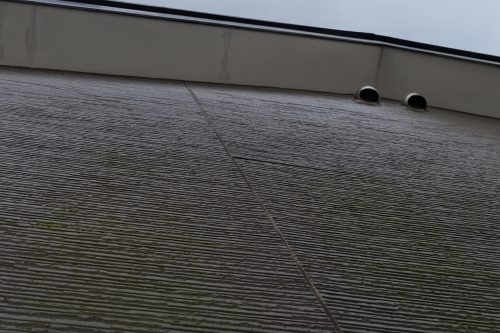 屋根には苔や汚れが付着していました。これは、特にカラーベストの屋根に多い劣化症状で、湿気の多い場所や影になる部分で苔が発生しやすいです。苔が根を張ることで屋根材が脆くなり、将来的な雨漏りの原因となることもあります。苔の除去と防水処理を行い、屋根の耐久性を回復させる必要があります。