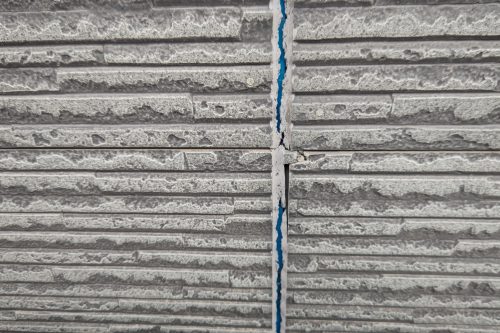 サイディングボードの継ぎ目部分にはシーリング(コーキング)が施工されていますが、これが経年劣化で硬化し、ひび割れが生じていました。シーリングの劣化は、防水機能の低下を引き起こし、雨水の侵入や内部の腐食につながるリスクがあるため、特に注意が必要です。