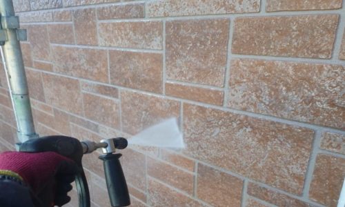塗料がしっかりと密着するように、高圧洗浄機を使って外壁表面の汚れなどを徹底的に除去しました。外壁の隅々まで清掃を行い、下地の準備を整えました。