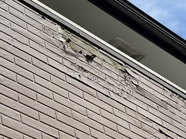 外壁の一部で塗膜が剥がれている箇所が見受けられました。この状態を放置すると、外壁が雨水を吸収し、さらなる劣化が進むリスクがあります。特に、剥がれた部分にそのまま塗装を行っても新しい塗膜が密着せず、再び剥がれてしまう恐れがあります。
