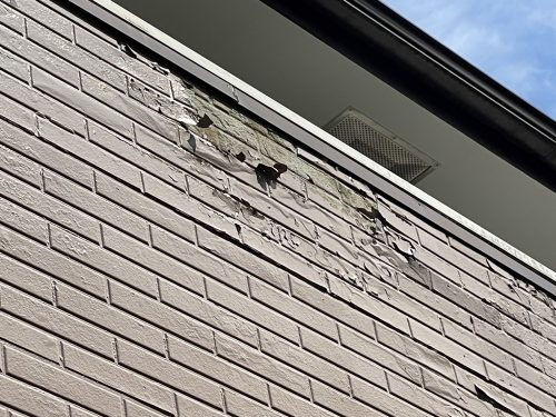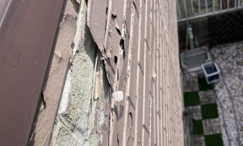 外壁の一部で塗膜が剥がれている箇所が見受けられました。この状態を放置すると、外壁が雨水を吸収し、さらなる劣化が進むリスクがあります。特に、剥がれた部分にそのまま塗装を行っても新しい塗膜が密着せず、再び剥がれてしまう恐れがあります。
