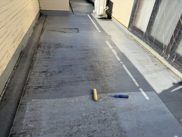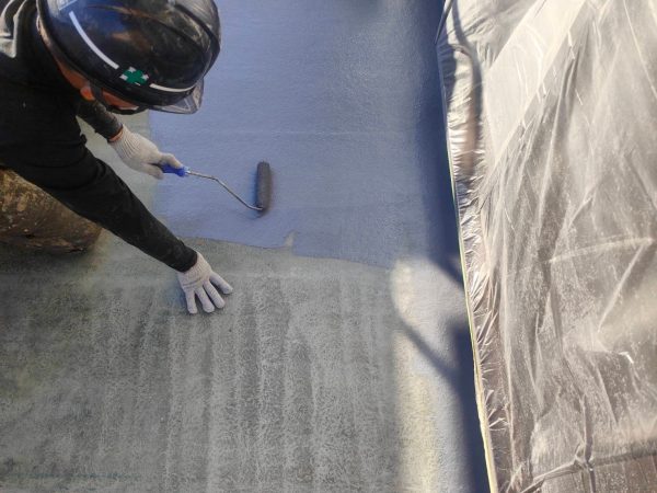 下地と新しい防水層の密着性を高めるため、プライマーをしっかりと塗布します。