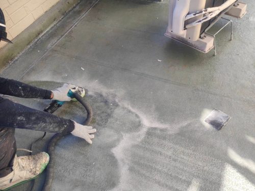 今回の工事では、既存のFRP防水の状態を確認し、以下の工程で作業を進めました。