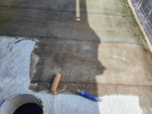 下地と新しい防水層の密着性を高めるため、プライマーをしっかりと塗布します。