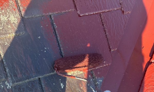屋根材に塗料がしっかり定着するよう、下塗りを2度行いました。