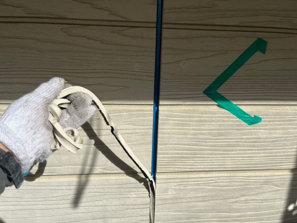 サイディングボードの目地部分は外壁全体の防水性に関わる重要な箇所です。劣化していた既存のシーリング材をすべて撤去し、新しい高性能のシーリング材を充填しました。これにより、隙間からの水の侵入を防ぎ、建物全体の防水性能が向上しました。