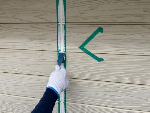 サイディングボードの目地部分は外壁全体の防水性に関わる重要な箇所です。劣化していた既存のシーリング材をすべて撤去し、新しい高性能のシーリング材を充填しました。これにより、隙間からの水の侵入を防ぎ、建物全体の防水性能が向上しました。