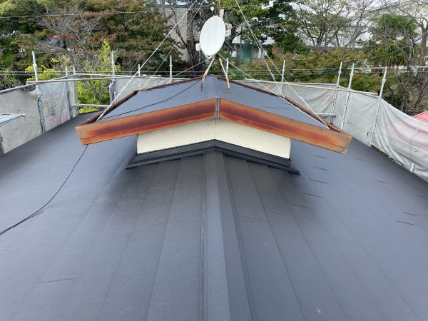 防水シートの上から新しい金属屋根材を重ねて固定。職人が丁寧に施工し、美しい仕上がりを目指しました。
