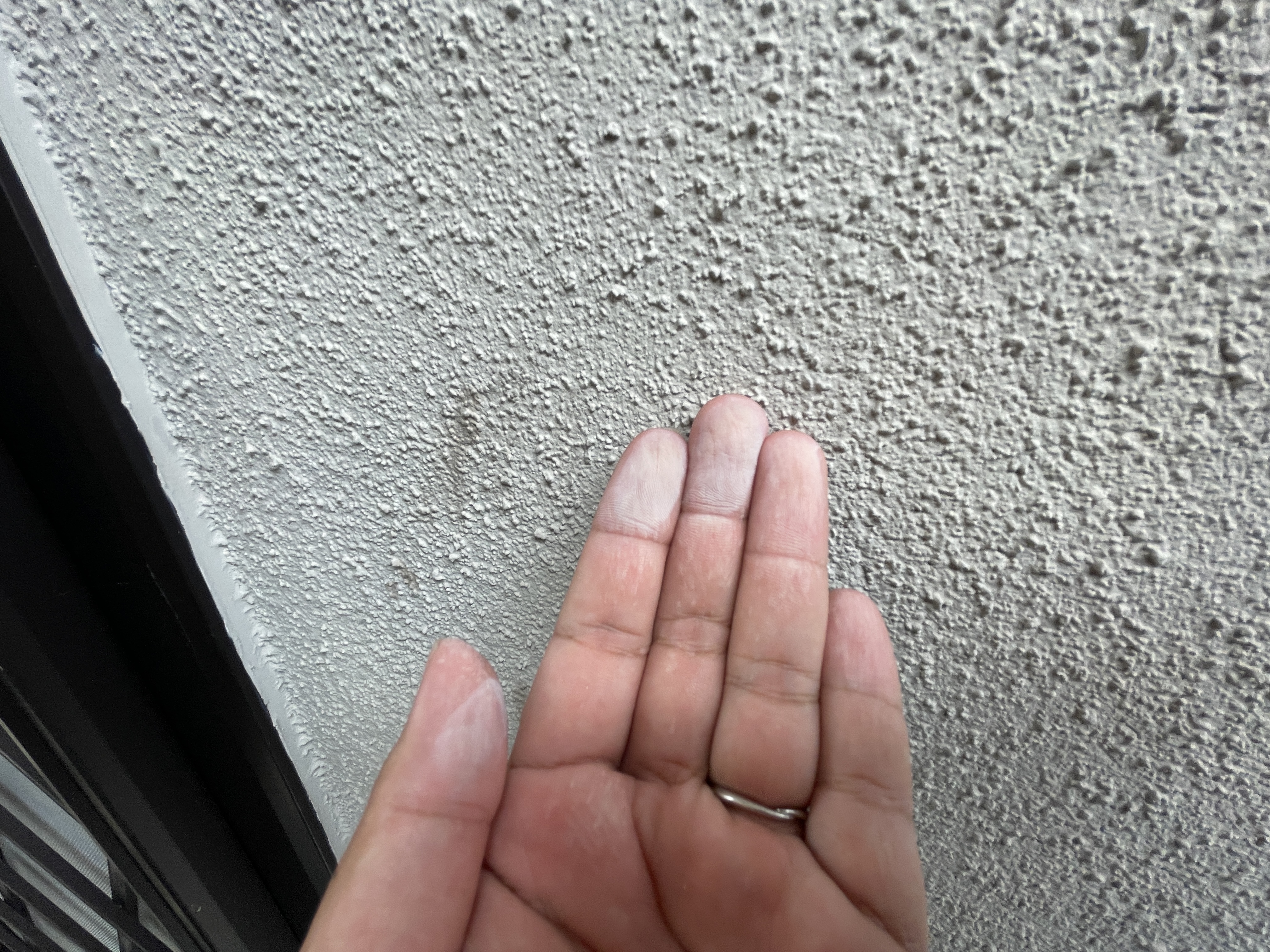 また、外壁にはチョーキング(白い粉が浮き出る現象)が発生しており、外壁自体にもひび割れが目立ちました。