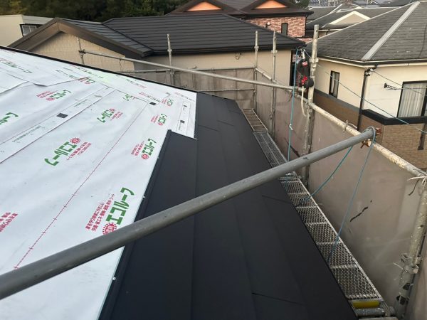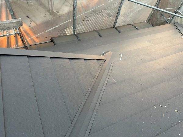屋根にはスーパーガルテクトを使用し、カバー工法で施工しました。