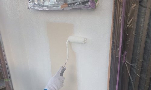 まず、下塗りをしっかりと行い、外壁に塗料が密着するようにしました。その後、上塗りを重ねていきます。RHピュアフレック4Fは、適切な塗布量を守ることでその特性を最大限に発揮するため、職人の経験と技術が光る部分です。