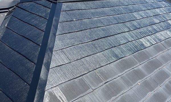 屋根には「快適スーパーSI」を塗布し、まずは下塗りを2度行い密着性を高めました。その後、中塗り、上塗りを行い、耐久性と遮熱効果を十分に引き出しました。屋根全体に均等に塗料を塗布することで、遮熱効果を最大限に活用できる仕上がりとなりました。