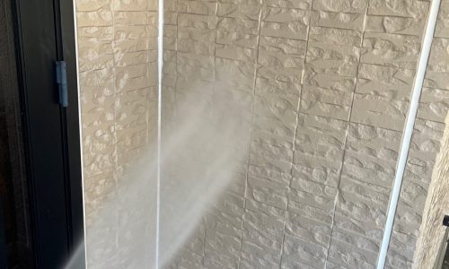 外壁にはKFスーパーSiを使用し、まず下塗りを行いました。次に、中塗り、上塗りを重ねることで均一な仕上がりを実現しました。特に重要なのは、塗料がしっかりと定着するように丁寧に塗り重ねることです。