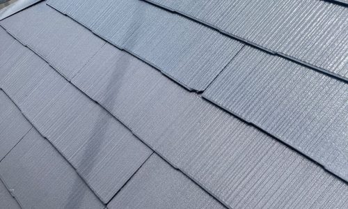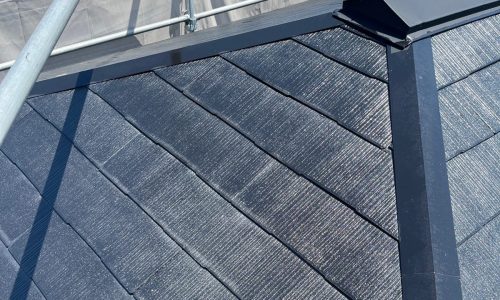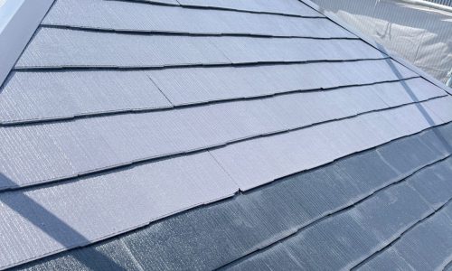 屋根には「快適スーパーSI」を塗布し、まずは下塗りを2度行い密着性を高めました。その後、中塗り、上塗りを行い、耐久性と遮熱効果を十分に引き出しました。屋根全体に均等に塗料を塗布することで、遮熱効果を最大限に活用できる仕上がりとなりました。