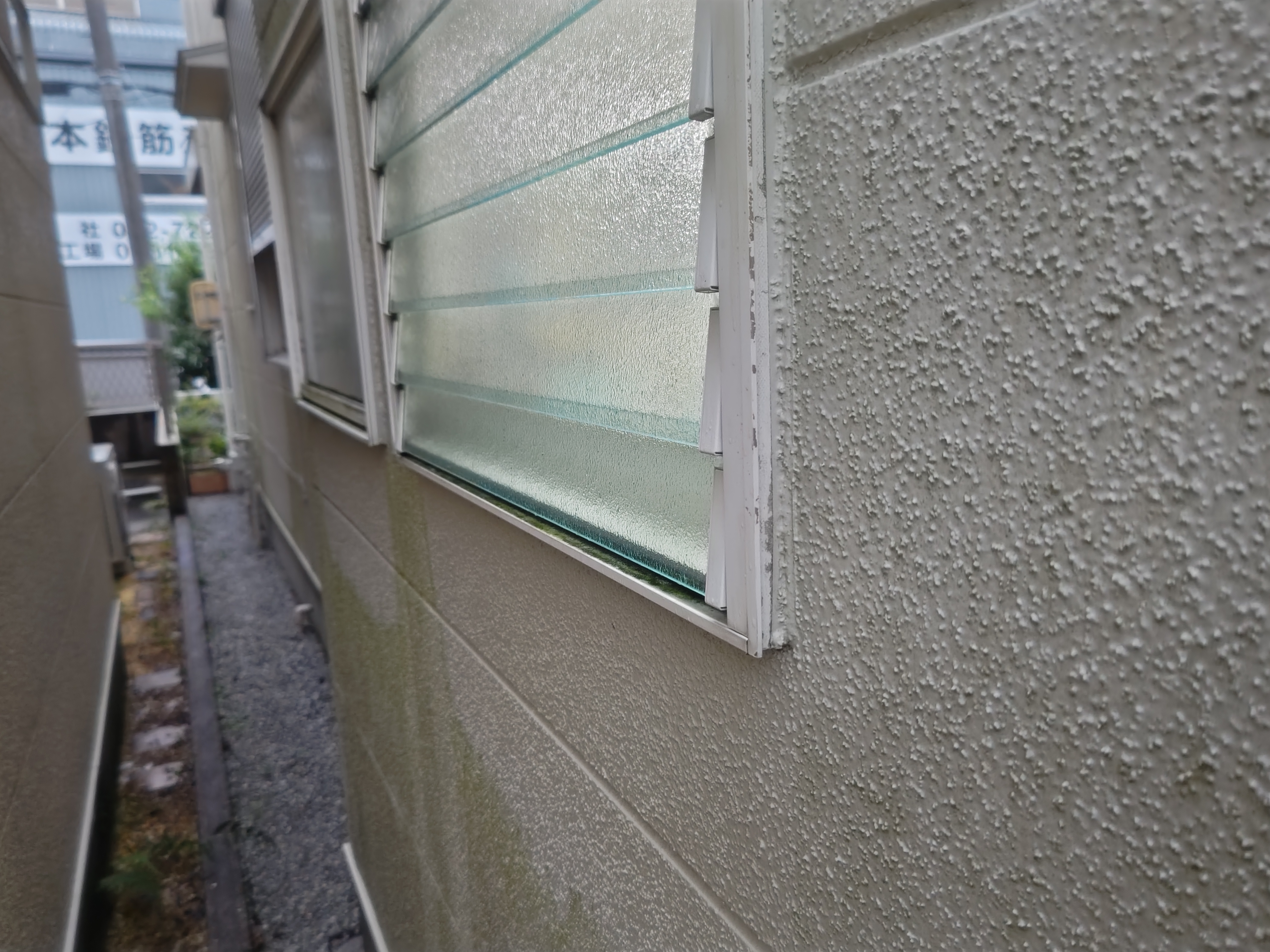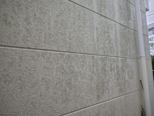 さらに、塗膜の劣化によるチョーキング現象(手で触ると白い粉がつく現象)が見られ、シーリング材には亀裂が発生していました。これらは外壁材そのものの保護性能が低下しているサインです。