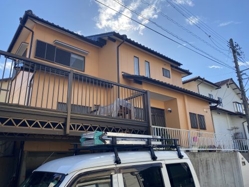 もともとはホワイト系の外壁でしたが、「思い切って明るくしたい」とのご要望から、オレンジ系の色に塗り替えました。