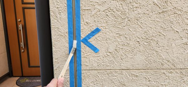 施工はまず、外壁のシーリング部分をすべて撤去し、新しいシーリング材でしっかりと充填しました。このシーリング工事は、外壁塗装の前に行う非常に重要な工程です。シーリングを交換することで、建物の防水性が保たれ外壁に雨水が侵入するリスクを防ぎます。