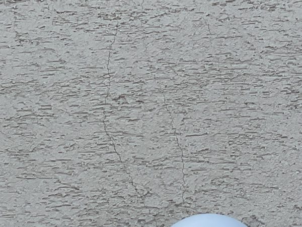 まず最初に目に入ったのは、モルタル壁に見られるひび割れです。外壁全体にひび割れが数ヶ所確認でき、放置しておくと水分が侵入し、さらに劣化が進んでしまう恐れがあります。
