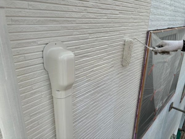 次に、外壁塗装の下塗り工程を実施。下地処理をしっかり行うことで、仕上がりの美しさと塗料の密着性を高めます。中塗り・上塗りでは、耐候性・防汚性に優れたフッ素塗料を使用し、ツヤのある仕上がりを実現しました。
