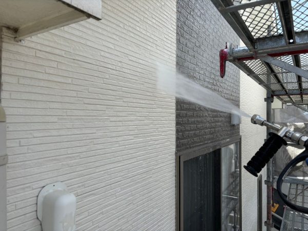 その後、高圧洗浄で外壁の汚れなどを徹底的に除去しました。