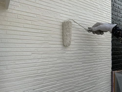 次に、外壁塗装の下塗り工程を実施。下地処理をしっかり行うことで、仕上がりの美しさと塗料の密着性を高めます。中塗り・上塗りでは、耐候性・防汚性に優れたフッ素塗料を使用し、ツヤのある仕上がりを実現しました。
