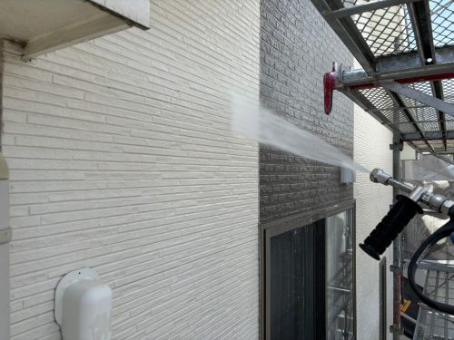 その後、高圧洗浄で外壁の汚れなどを徹底的に除去しました。