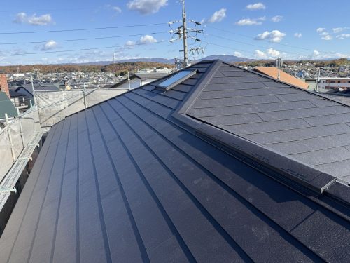 最後に、軽量で耐久性に優れたガルテクトを葺きました。この材料は錆びにくく、断熱性が高いことが特徴です。耐久年数も長いため、屋根のメンテナンス頻度を減らすことができ、お客様からも高い評価をいただいています。