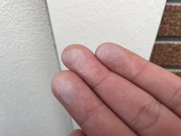 外壁を手で触ると、白い粉が手に付くことがあります。これは「チョーキング」と呼ばれる現象で、塗料が劣化しているサインです。