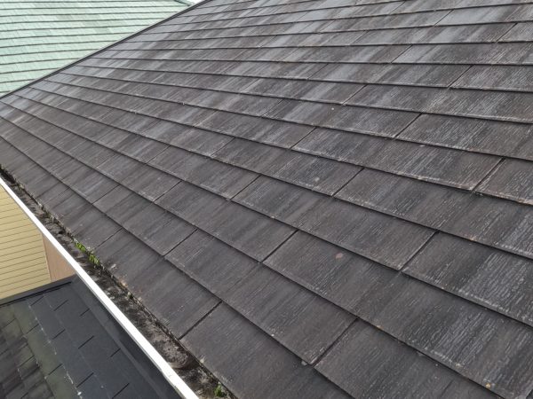 屋根に雨水が流れることで、雨筋汚れ(雨水の流れによって汚れが線状に残る現象)が発生します。これが長期間放置されると、屋根の塗装が劣化し、防水性が低下する原因となります。