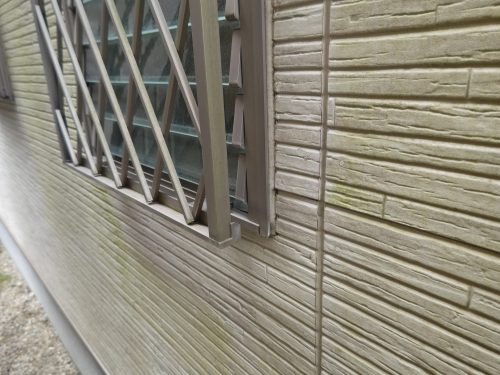北側や日当たりが悪い部分の外壁には、苔やカビが目立っていました。湿気がこもりやすい環境が原因で、見た目だけでなく防水性の低下も懸念されます。