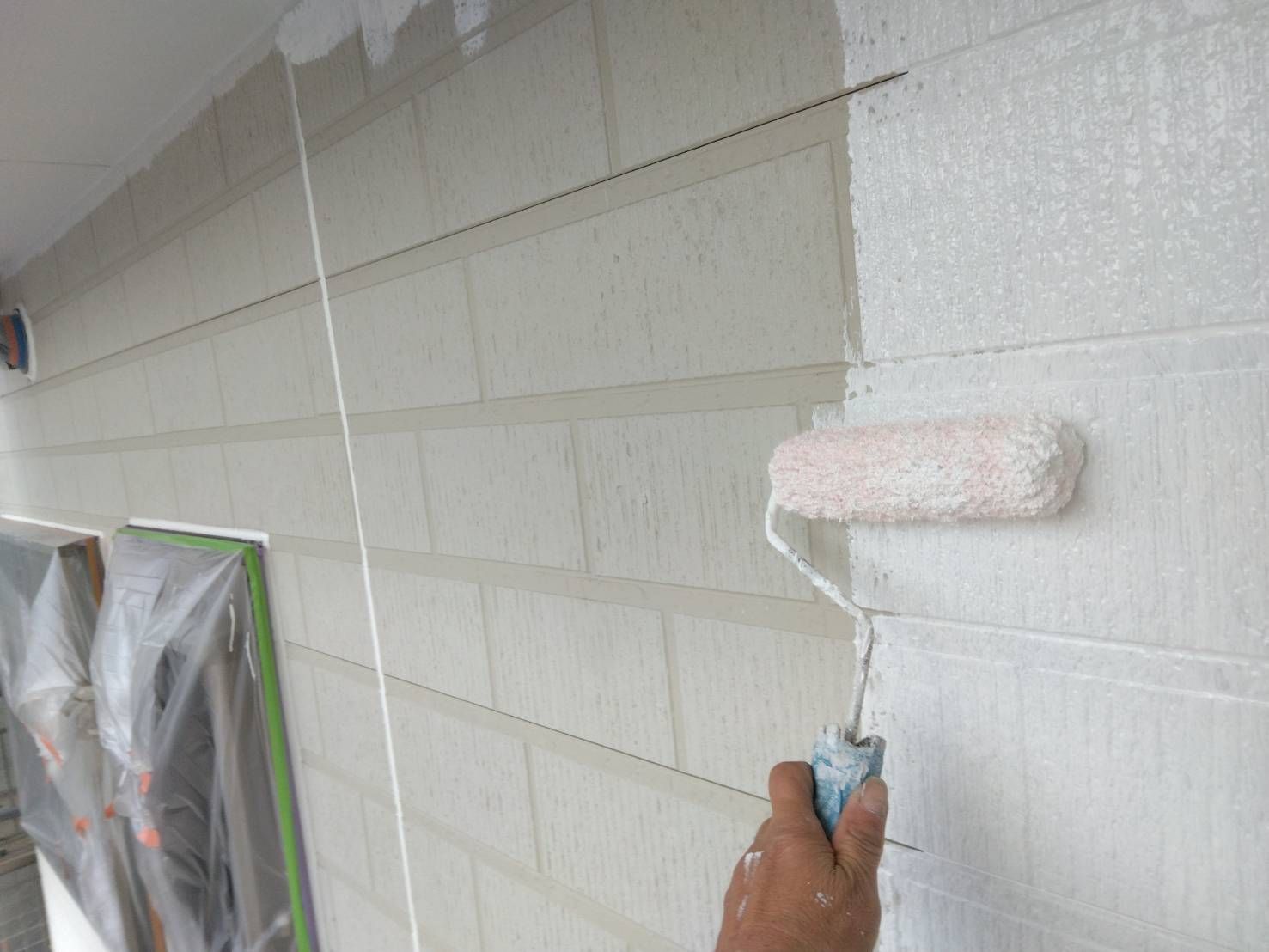 塗装前にシーリングを補修した後、外壁全体に無機塗料を均等に塗布しました。無機塗料は塗りムラが少なく、仕上がりが非常に美しいのが特徴です。お客様にもその仕上がりに大変ご満足いただけました。