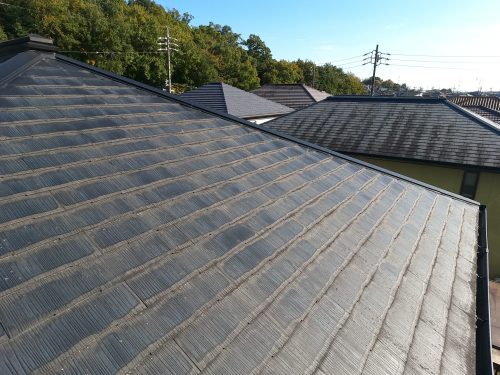 屋根材の塗膜が色褪せていることが確認されました。塗装の色が薄くなることで、美観が損なわれるだけでなく、屋根の防水性も低下します。