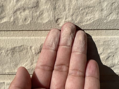 チョーキングとは、外壁の塗膜が劣化して、粉状の物質が表面に現れる現象です。この状態は、塗装が紫外線や雨風にさらされることで発生します。チョーキングが見られる場合、塗膜が保護機能を失っている証拠ですので、早急に塗装のリフォームが必要です。